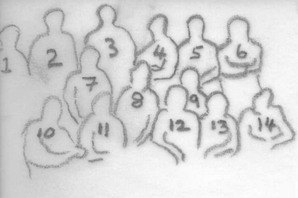 2. Bob Poyser (Poiss) 3. "Big" Dave ? 4. Ashley Cooper(?) 5. John Bainbridge(Ben/Benbow) 6. Ian Park (Chalmers)-