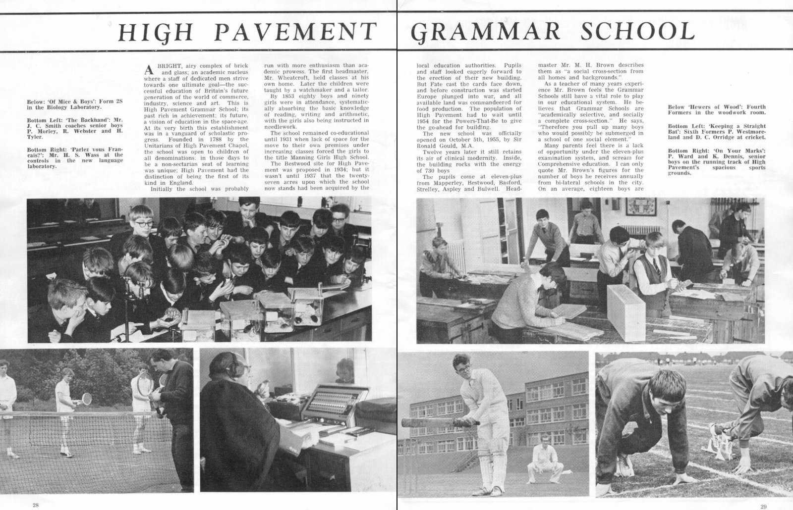 I have very fond memories of my time at High Pavement; it was a wonderful school with many talented teachers and pupils. I can think of Mr Stan Middleton, Mr Bill Gray, Mr Graves, Mr EWN Smith, Mr Preston, Mr Summers and of course the Head Mr Albert Brown.