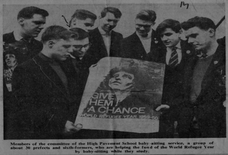 World Refugee Year. Peter Bleasby is top left, below him is me and John Walsh(?). On the extreme left is Ian Watson. I think the year is 1960.