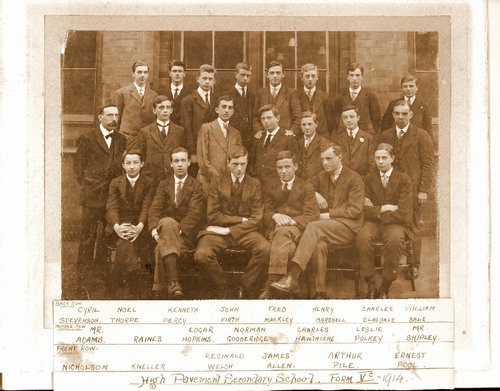 I was going through old family newspaper cuttings and came across a clip of a High Pavement school photo taken in 1908 when my grandfather, Harold Hancock, was 15. I’ve attached a copy of the cutting and am wondering if you can shed any light on my grandfather’s attendance there. I’d appreciate any insight you can offer.