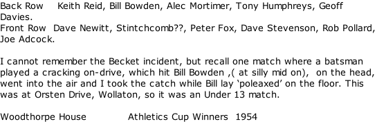 I am in the cricket team photograph supplied by David Newitt (1953 -