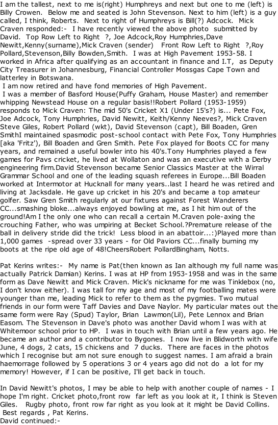 I attended High Pavement from 1951 to 1960. I was captain of School House and Vice-